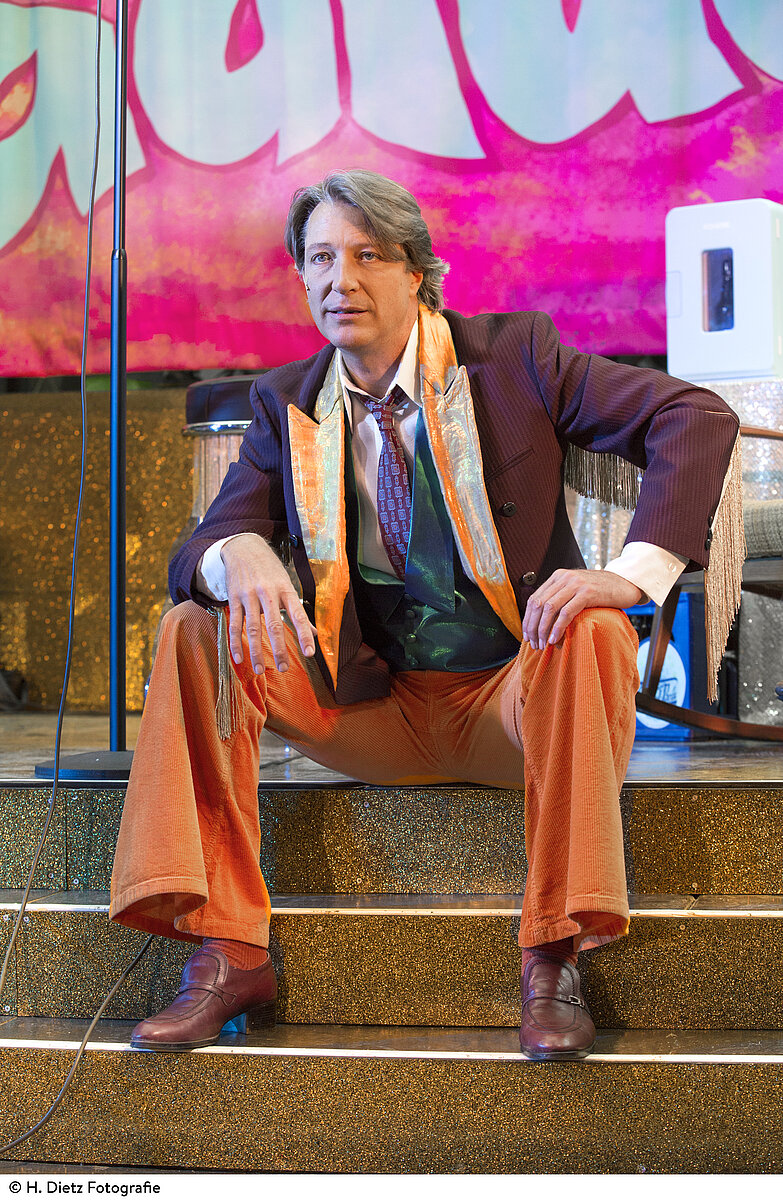 Wieder so eine Zwischenstation irgendwo im Nirgendwo, eine Absteige im Trott des Lebens der singenden Wundertüte Guido. Die Bühne gehört Guido! Und die Bilanz ist klar: Schluss mit dem ewigen Tingeltangel, Schluss mit den Krümeln, jetzt will er das größte Stück vom Kuchen! Hätte er doch damals zugegriffen, als sich ihm die Chance bot! Doch stattdessen blickt er jeden Morgen in einen anderen Hotelzimmerspiegel und fragt sich verwundert, wer ihn da so komisch anschaut, mit der Ausstrahlung einer kaputten Glühbirne und der Körperspannung von Dosenspargel. Doch was er nicht sieht: Gerade hinter der nächsten Ecke könnte ein neuer Anfang auf ihn warten.